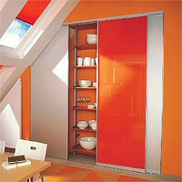 rešitev za izrabo prostora pod nižjim poševnim stropom je npr. garderoba. Zaprt prostor, opremljen s policami, predali, žičnimi mrežami, zaboji ali palicami za obešanje obešalnikov, je pogosto ločen od ostalega dela s pomičnimi vrati ali panelnimi zavesami. Če je garderobni prostor dovolj velik, je smiselno, da v njem predvidimo strešno okno, skozi katerega prodira dnevna svetloba, kar je dobrodošlo s funkcionalnega in psihološkega vidika. Prednost garderobe z dnevno svetlobo je tudi v tem, da si v njej lahko uredimo kotiček s toaletno mizico. Zanimiva rešitev so tudi pomična vrata z motnim steklom, skozi katere se v prostor širi del dnevne svetlobe, ki prihaja skozi strešno okno v garderobnem prostoru.
